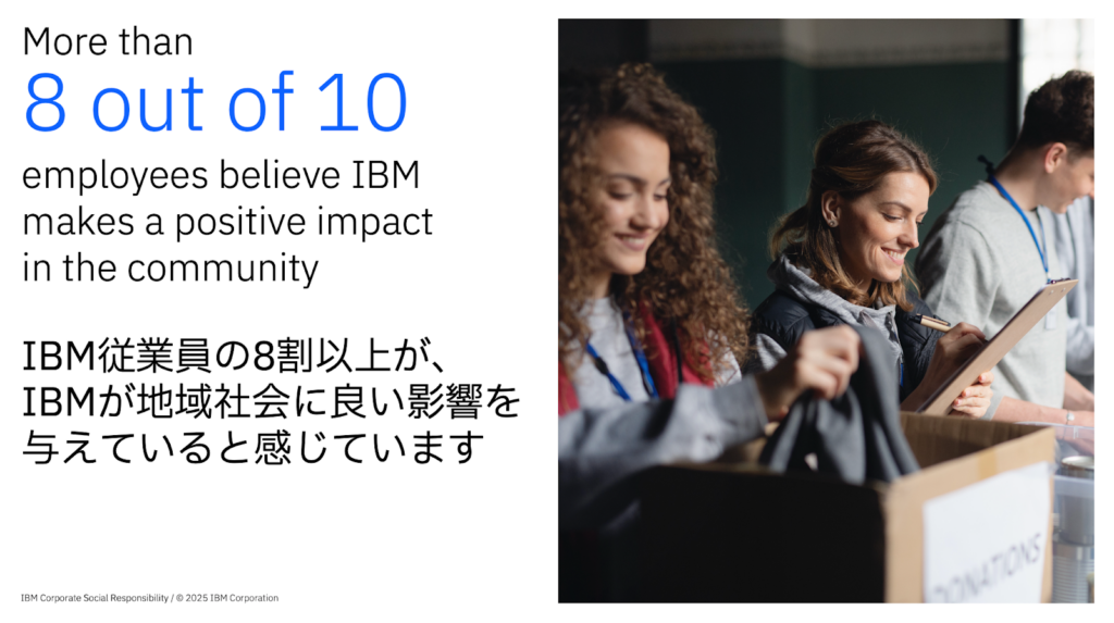 「良き企業市民たれ」「教育に飽和点はない」という100年前の理念が、AI時代の今も、IBM SkillsBuildという形で具体的なプログラムとして実践されています。そして、社員の8割以上がその活動の価値を実感していること。